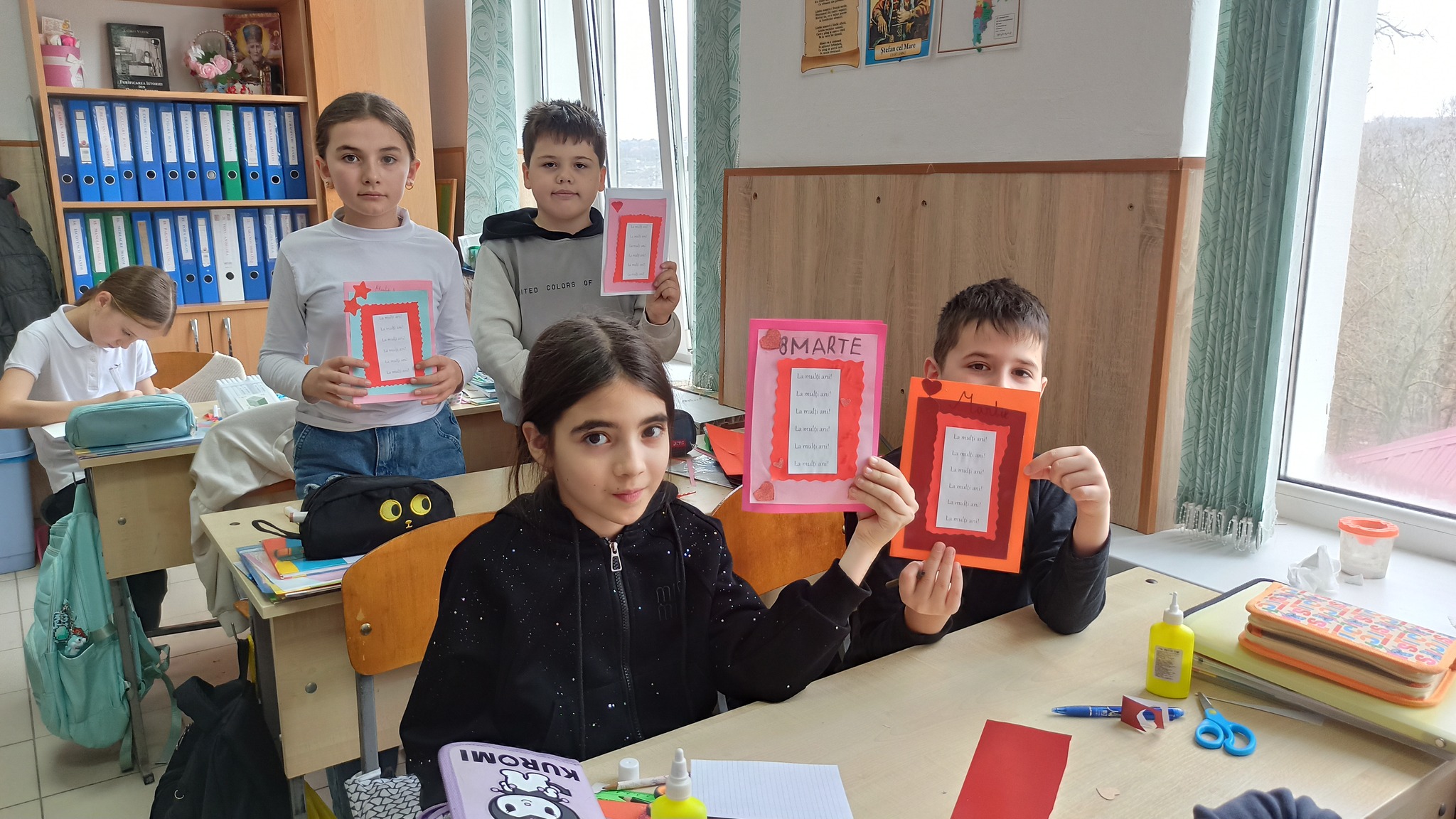Elevii claselor a II-a „A” și „B”, precum și a III-a „A” și „C”, ghidați cu dăruire de învățătoarele Vasiliță Raisa, Turchină Elena, Ivanova Tatiana și Constantinov Cornelia, în parteneriat cu Biblioteca „Adam Mickiewicz”, au realizat felicitări confecționate din materiale reciclabile – o modalitate frumoasă de a transforma lucrurile simple în daruri pline de emoție pentru mame.